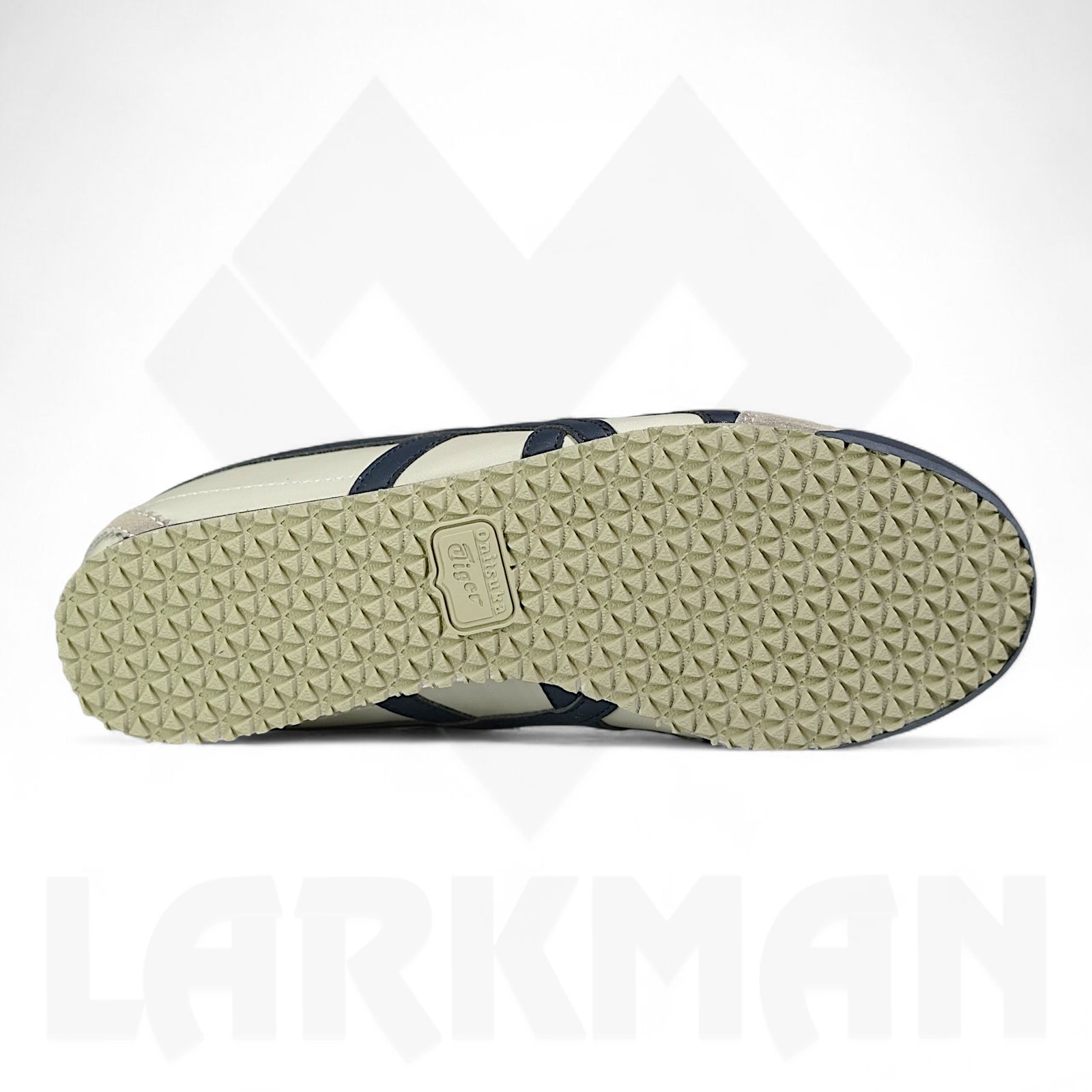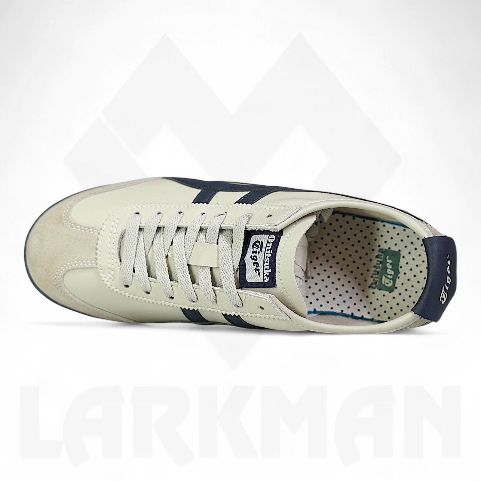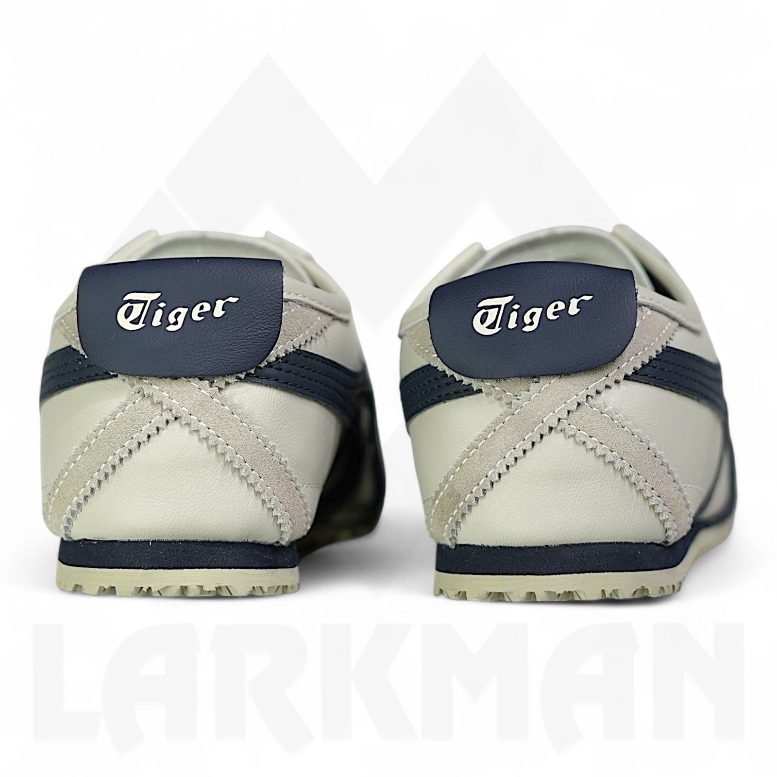 High-Contrast Accents: The signature Mexico 66 stripes and "Tiger" branded heel tab are finished in a deep peacoat blue, providing a sharp, classic contrast.