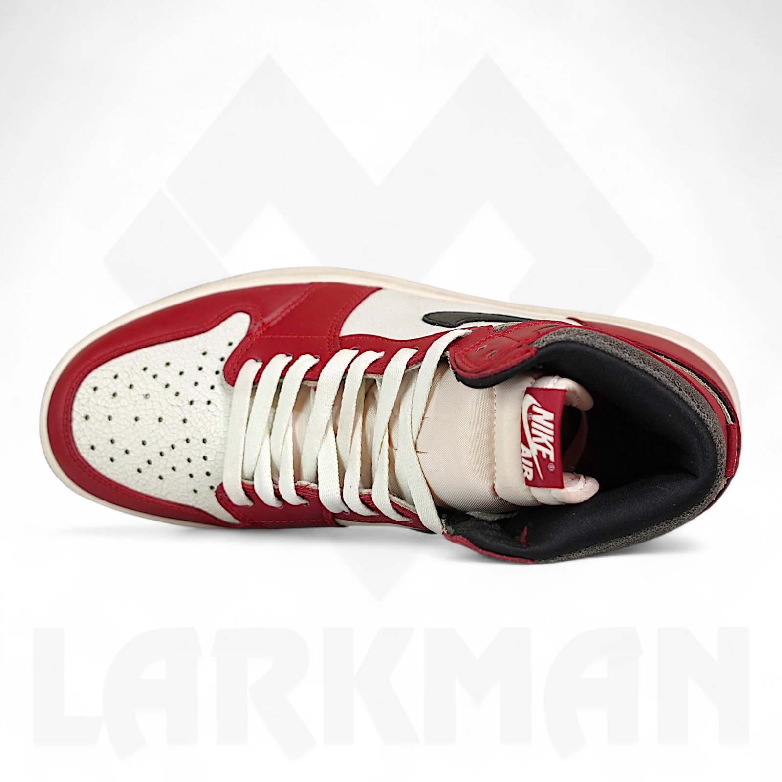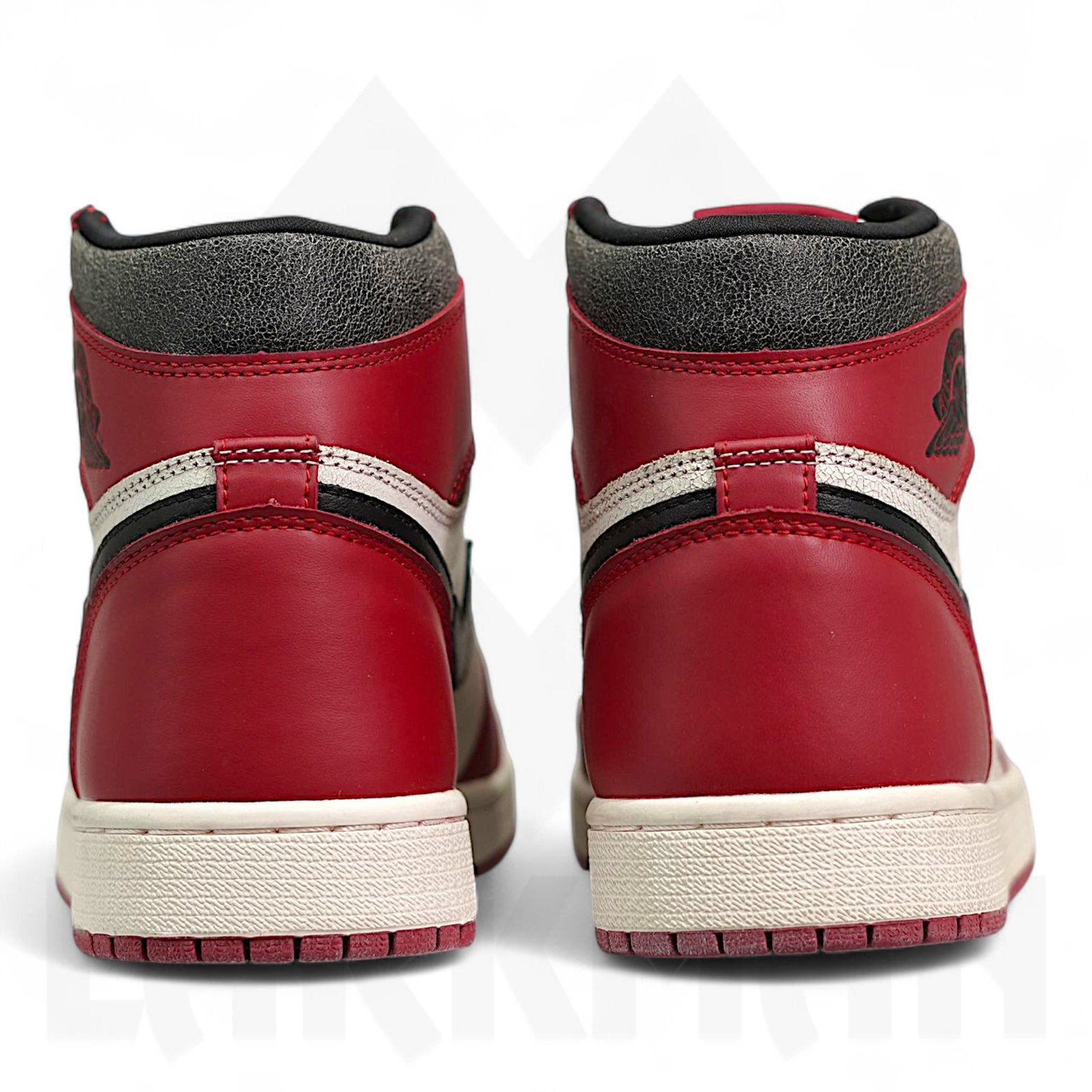 The Air Jordan 1 Retro High OG "Chicago Lost & Found" reimagines the iconic 1985 "Chicago" colorway with a distinct vintage aesthetic. This design tells the story of a rediscovered classic, featuring cracked leather on the panels and pre-yellowed midsoles to mimic an aged look. The sneaker blends original 1985 proportions with an improved, modern fit and includes signature details like the "Nike Air" tongue tag and Wings logo. The storytelling is completed with distressed packaging and tissue paper featuring vintage advertisements.