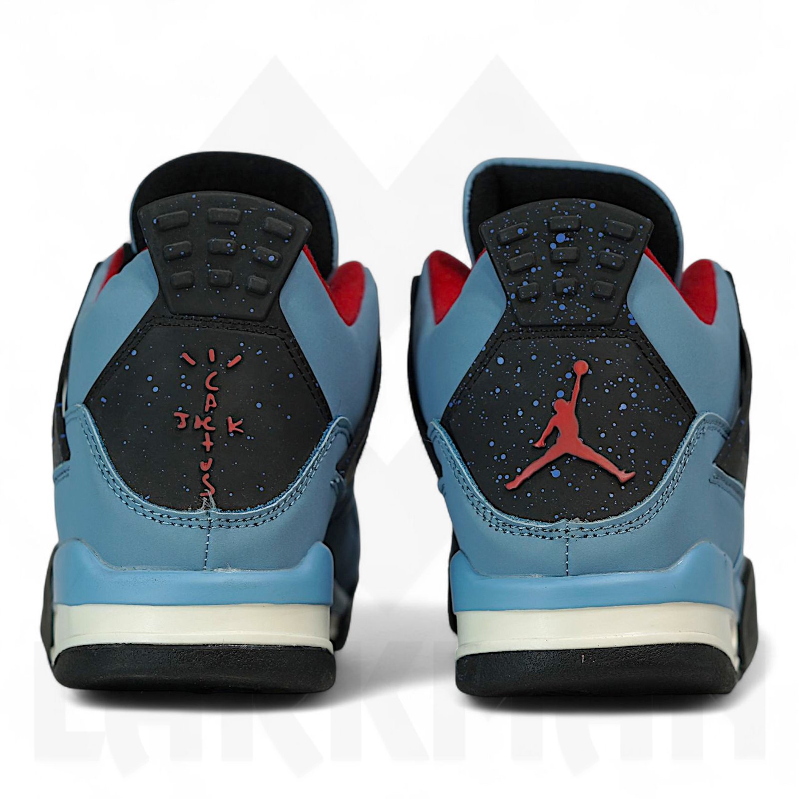 The Air Jordan 4 Retro "Cactus Jack" is a landmark collaboration between Jordan Brand and Travis Scott. This edition is defined by its vibrant blue suede upper, which is contrasted by bold black accents and a striking red inner liner. The sneaker features unique paint splatter detailing on the lace wings and heel, while the signature "Cactus Jack" branding on the heel tab serves as a nod to the rapper’s record label. A crisp white midsole and classic visible Air cushioning complete this high-energy, soulful silhouette.
