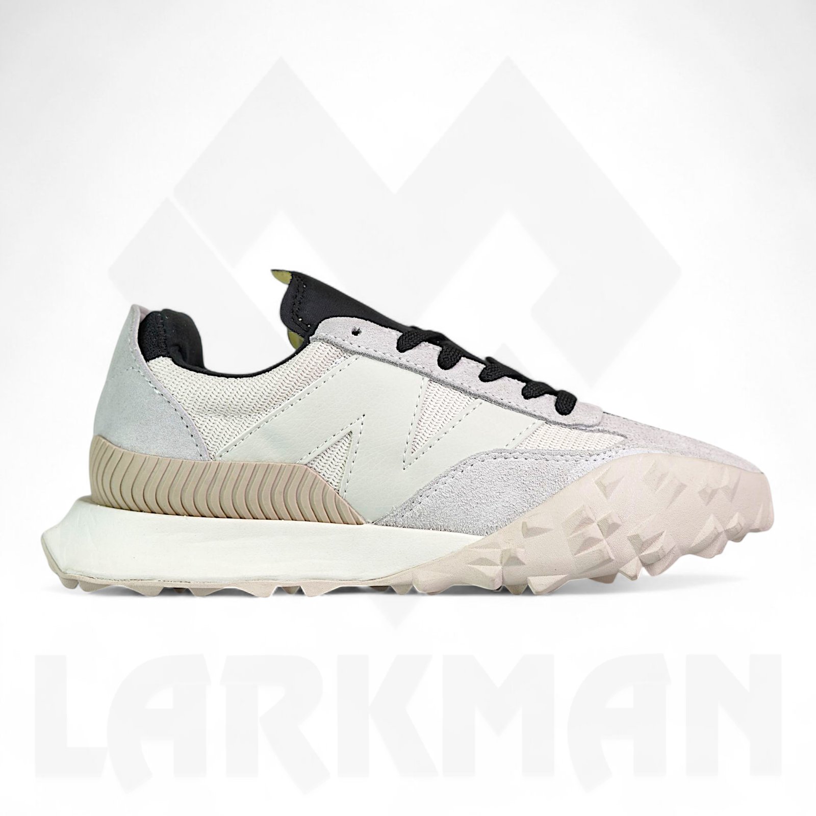 The XC-72 pushes classic inspiration into unexplored territory with a time-bending design, inspired by the technological optimism of 1970s concept cars. It features a knit mesh upper with chrome-free suede overlays and a leather 'N' logo. The aggressive, experimental design includes angular features, a squared toe shape, and a unique vertically split outsole that combines three distinct traction patterns for superior grip and stability.