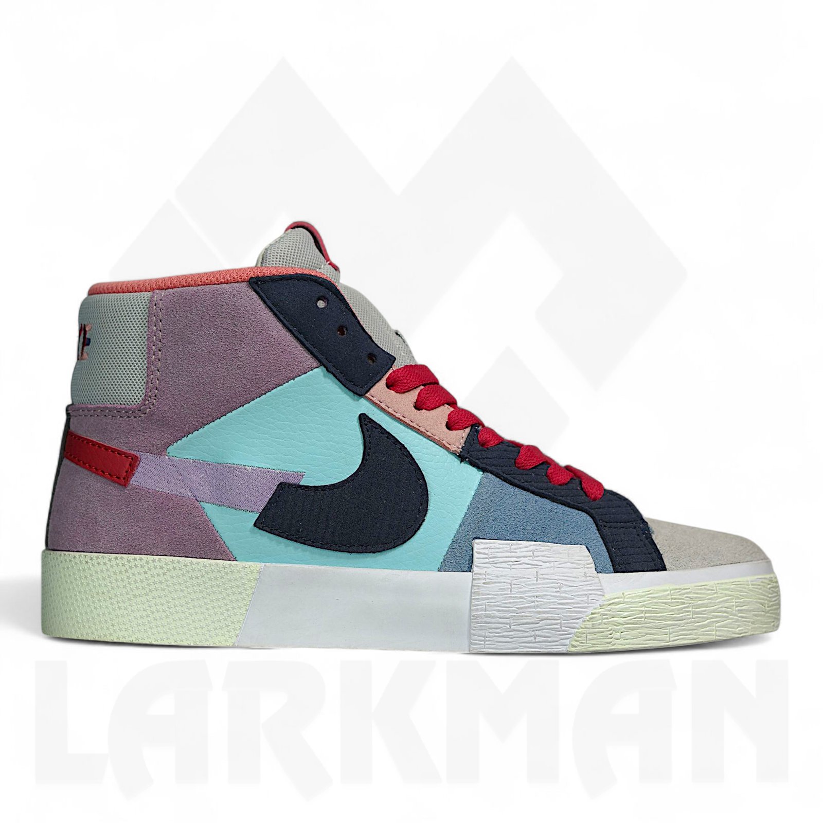 The Blazer Mid Mosaic Pack offers a distinctive, reconstructed look. This unique design features multi-material construction across the upper, highlighted by a mashed-up Swoosh logo. The design is finished with a raised Vulc Wrap Ollie Patch, blending unique aesthetic details into a classic silhouette.